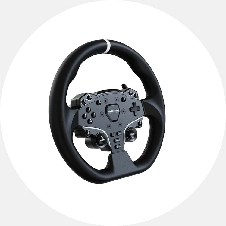 The Moza ES wheel's round design makes it a versatile option for simracers, ensuring compatibility with various types of racing cars. Its universal shape mirrors traditional racing wheels, allowing for seamless integration into different virtual racing setups. This versatility enables users to transition effortlessly between different racing experiences without the need for multiple specialized wheels, making the Moza ES an accessible and practical choice for simracers looking for versatility in their setup.